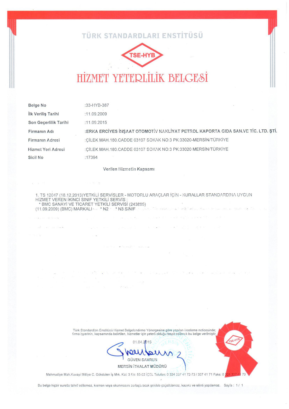 Sertifikalarımız